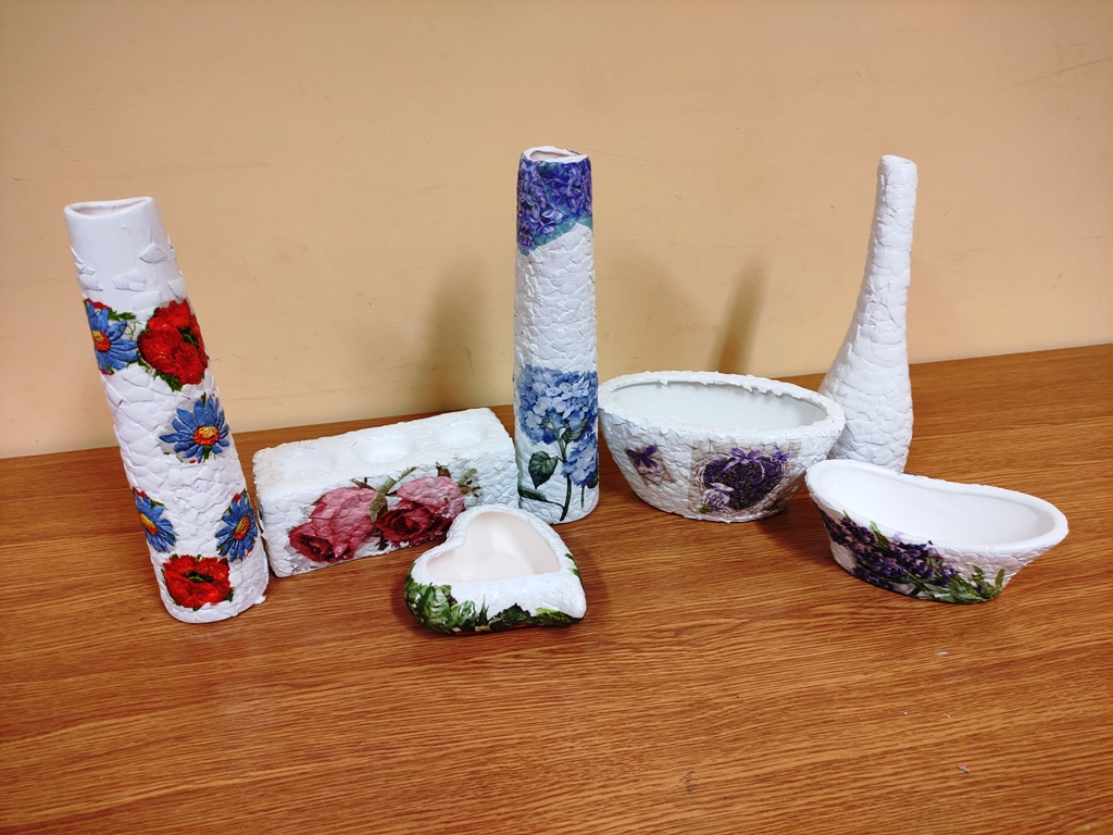 ???? W dniach 24.11.2021 - 01.12.2021 r. wychowankowie z grupy I - IV wzięli udział w warsztatach rękodzielniczych - sztuka zdobienia ceramiki techniką decoupage.