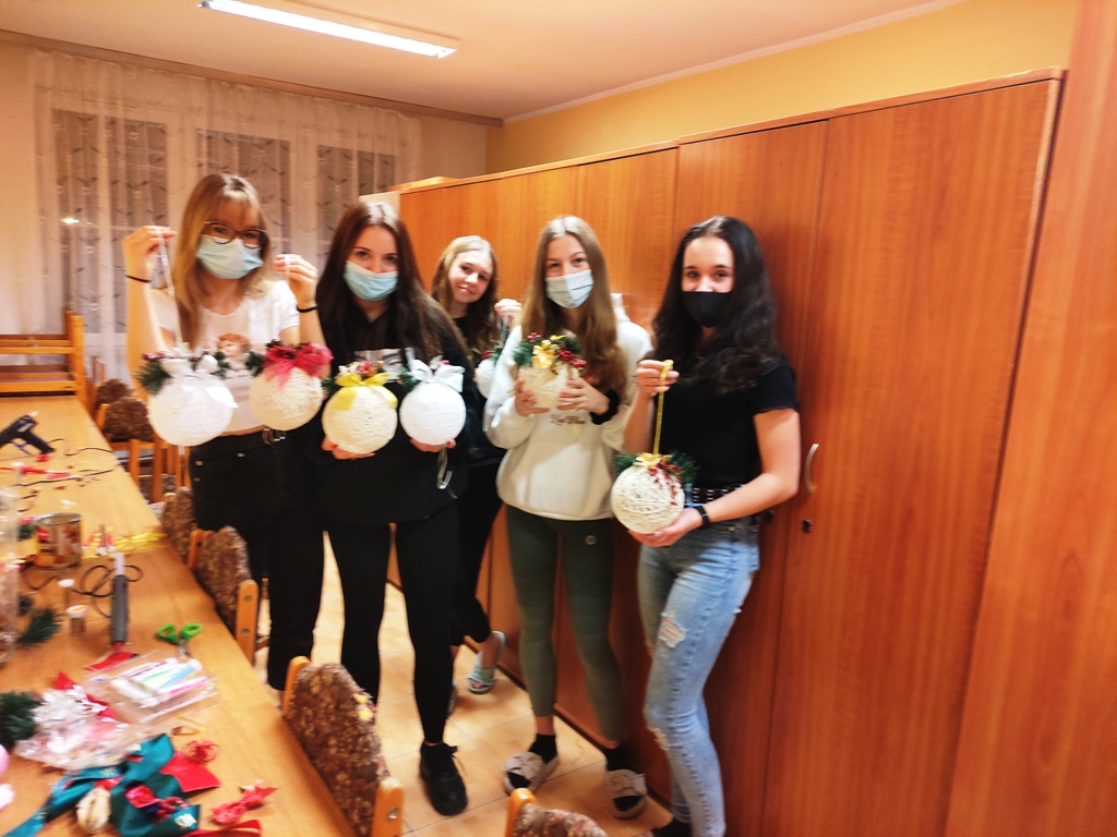 ✨????✨W dniach 09-15.12.2021 r. dziewczęta z grupy I wzięły udział w zajęciach rękodzielniczych i przygotowały ażurowe bombki z włóczki i cukru. Najprzyjemniejszym elementem zajęć okazało się zdobienie wykonanych bombek gałązkami świerku, szyszek, brokatu z dodatkiem kolorowych błyszczących wstążek.