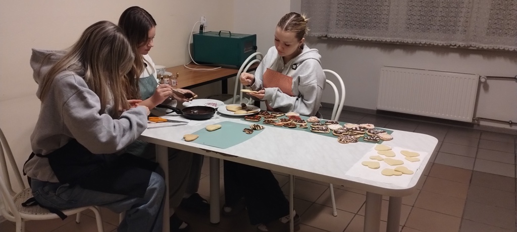 Dnia 07.02.2024 r. z okazji nadchodzących Walentynek Wychowanki z grupy I-III wzięły udział w zajęciach kulinarnych.
