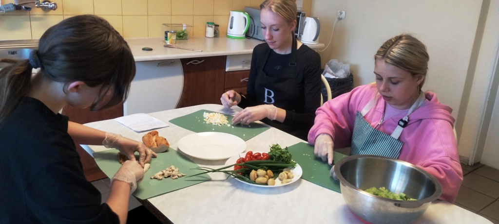Dnia 11.06.2024 r. wychowanki z grupy I uczestniczyły w ostatnich zajęciach kulinarnych w tym roku szkolnym. Dziewczęta tym razem przygotowały wyborną sałatkę z kurczakiem wędzonym z dodatkiem żółtego sera , pieczarek, jajek oraz warzyw. Poczęstunek tak przyrządzonej sałatki okazał się dobrym pomysłem przed wieczorną kolacją.