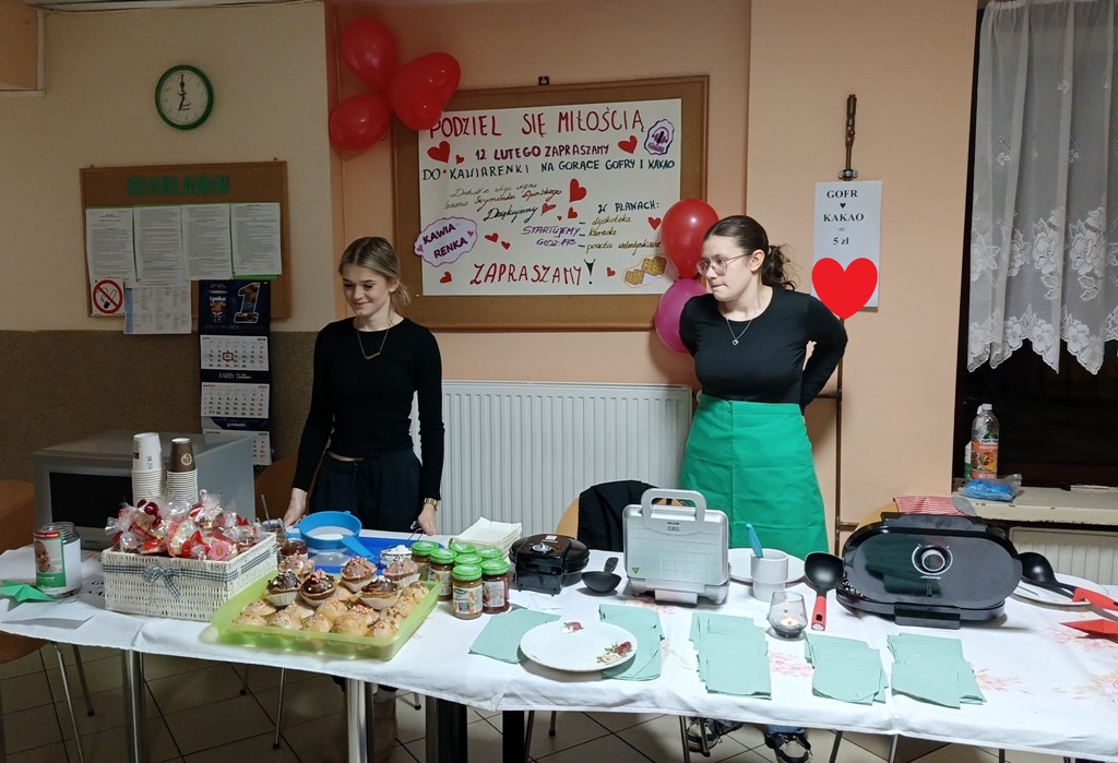 💝Na holu głównym działała kawiarenka, która serwowała pyszne gofry, babeczki, ciastka oraz kakao. Dany zestaw kosztował jedyne 5 zł. Cały dochód w myśl przyjętego hasła: Podziel się miłością został przekazany na pomoc w leczeniu Szymonka Lipińskiego💞.