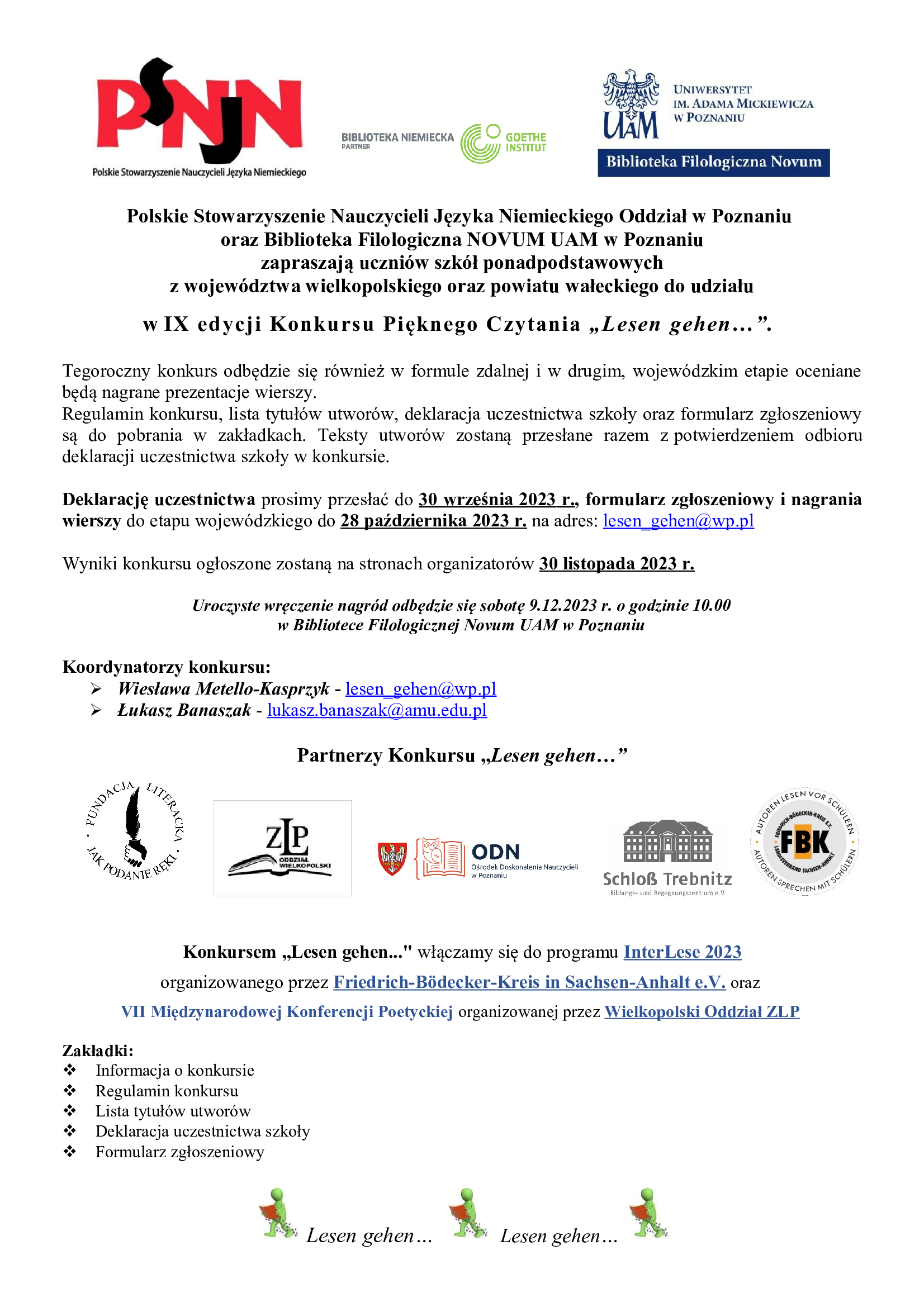 🇩🇪UWAGA: KONKURS CZYTANIA POEZJI NIEMIECKIEJ: "LESEN GEHEN..."🇩🇪