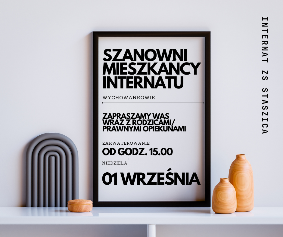 Wychowanków internatu zapraszamy wraz z rodzicami/opiekunami prawnymi 1 września od godz. 15.00.