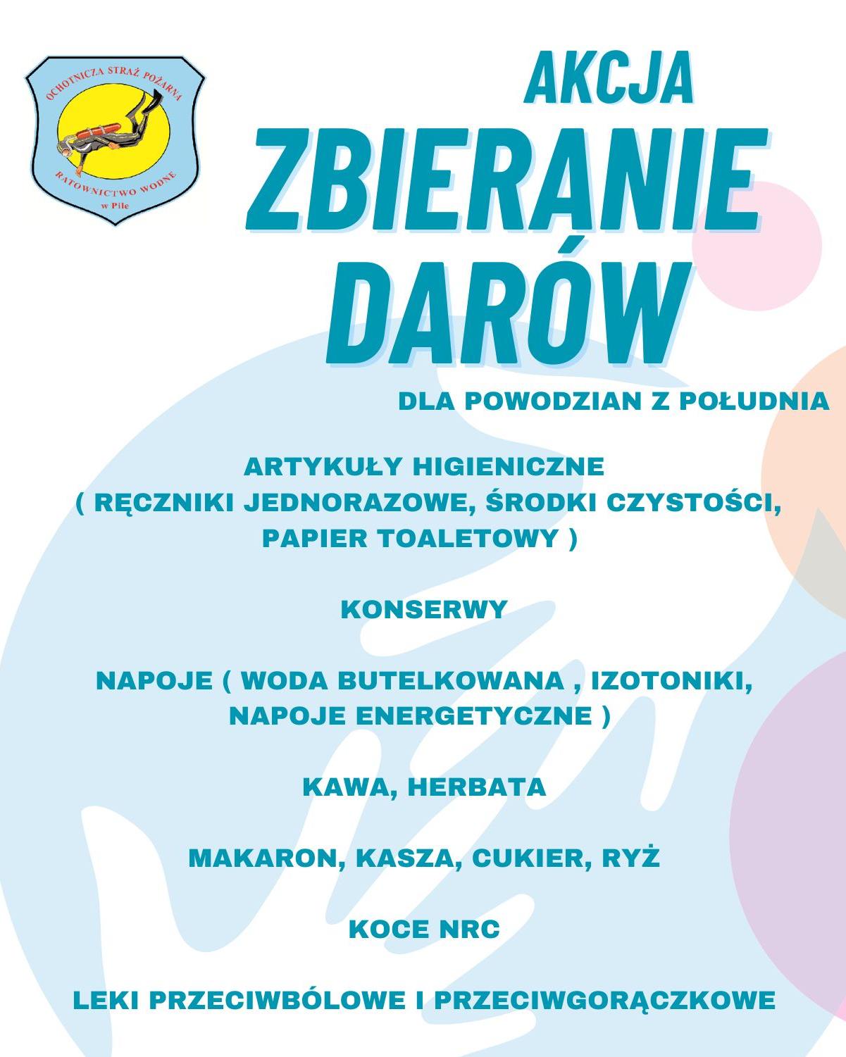 W związku z obecną sytuacją na południu Polski, nasza szkoła dołącza do akcji charytatywnej zorganizowanej przez Ochotniczą Straż Pożarną Ratownictwo Wodne w Pile i uruchamia punkt zbiórki darów w internacie szkoły.