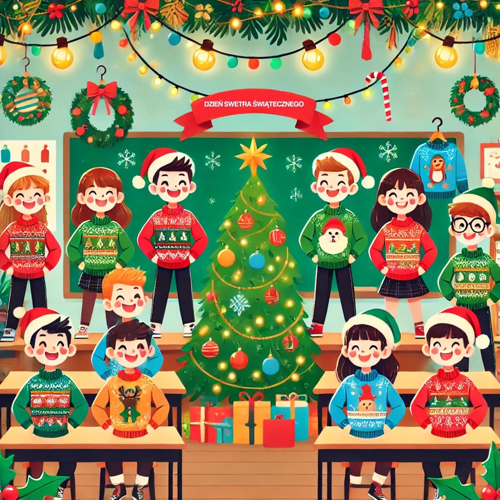 Z radością informujemy, że 6 grudnia 2024 r. w naszej szkole odbędzie się Dzień Swetra Świątecznego!
