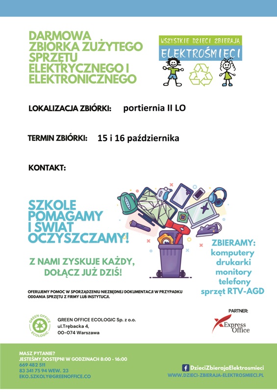 Nasza szkoła przystąpiła do projektu ekologicznego „WSZYSTKIE DZIECI ZBIERAJĄ ELEKTROŚMIECI”.