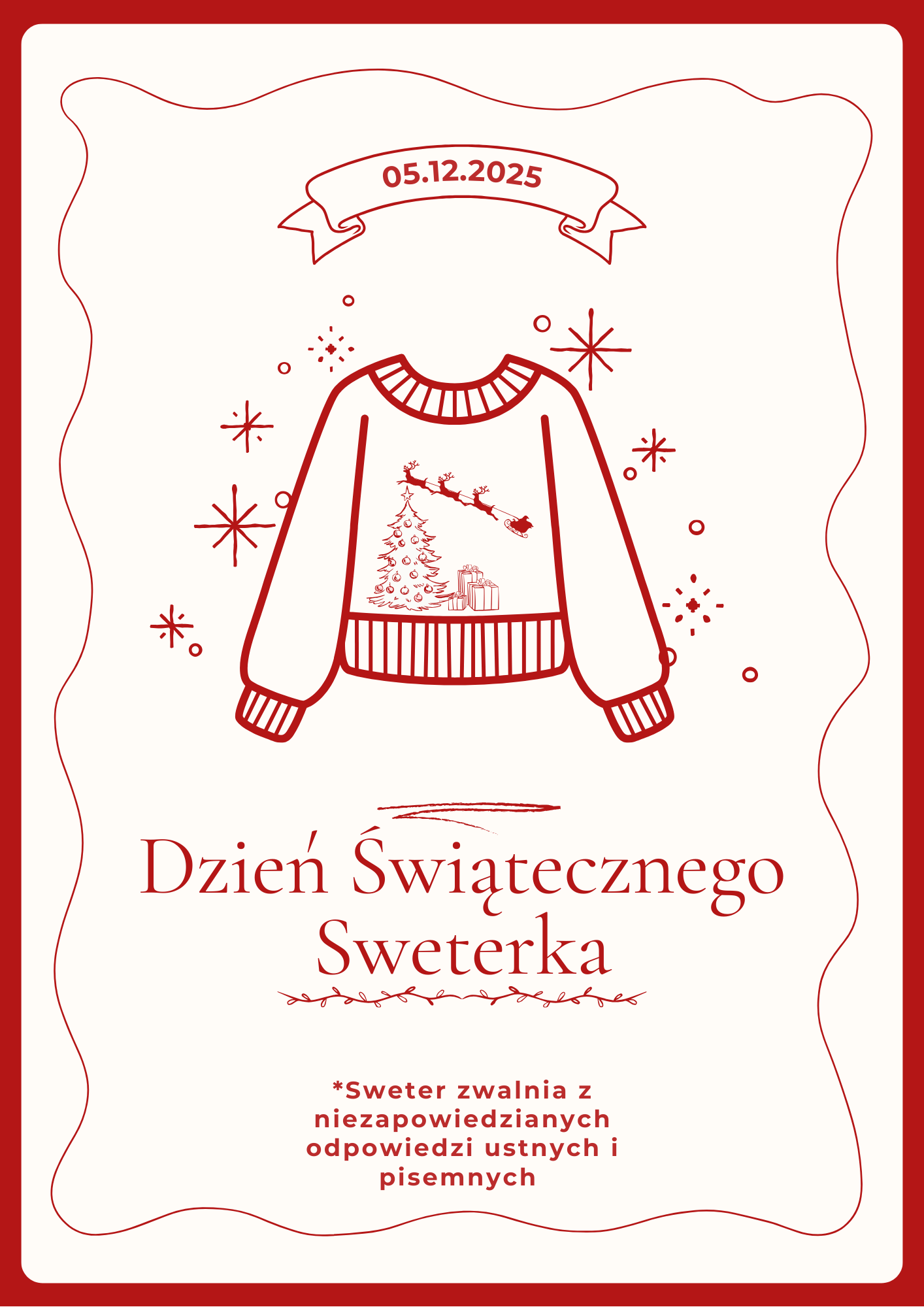 W piątek 5 grudnia wskakujemy w świąteczne, mięciutkie sweterki i z uśmiechem, bez stresu ruszamy na lekcje!