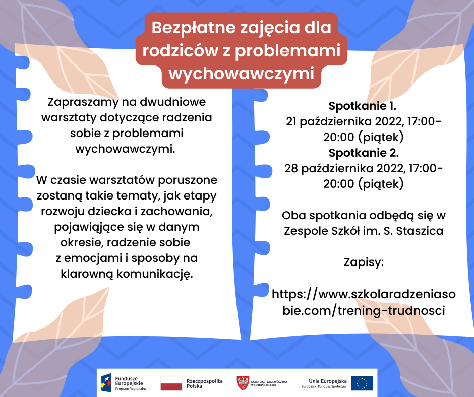 Spotkania odbędą się 21 i 28 października od 17:00 do 20:00 w Zespole Szkół im. Stanisława Staszica.