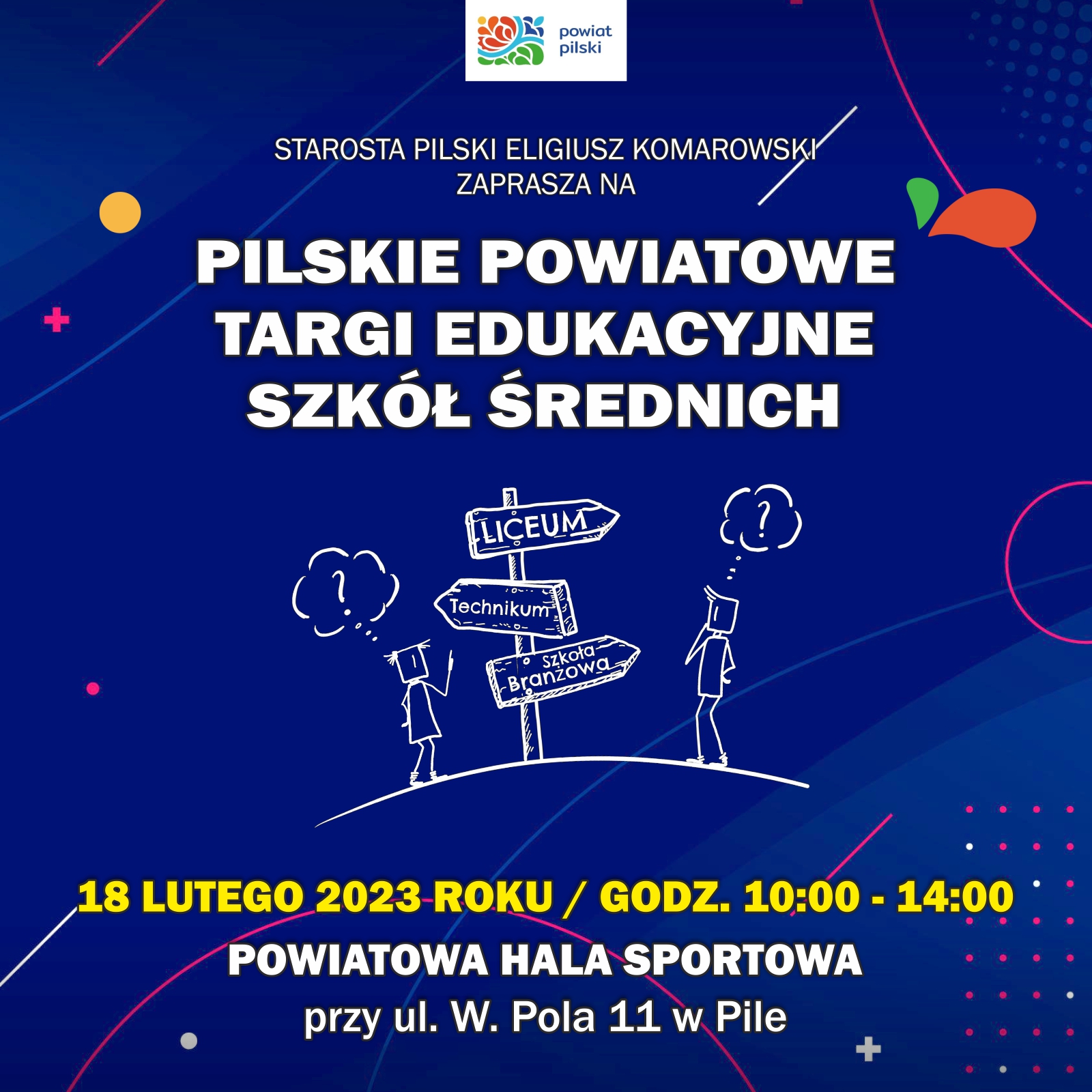 W imieniu organizatorów serdecznie zapraszamy uczniów szkół podstawowych i ich rodziców na nasze stoisko na Pilskich Powiatowych Targach Edukacyjnych Szkół Średnich.
