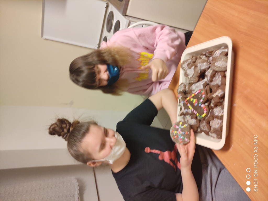 Dziewczęta z dużym zaangażowaniem wykonywały poszczególne etapy przygotowania ciastek tak jak: wałkowanie ciasta, wycinanie, pieczenie, lukrowanie oraz ozdabianie.