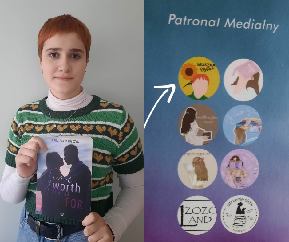 Wyobraźcie sobie, że ❤Agata Nagórna❤, uczennica 1c, sprawuje patronat medialny nad książką Karoliny Jakóbczyk "Time worth dying for" a Jej piękne logo widnieje na okładce.