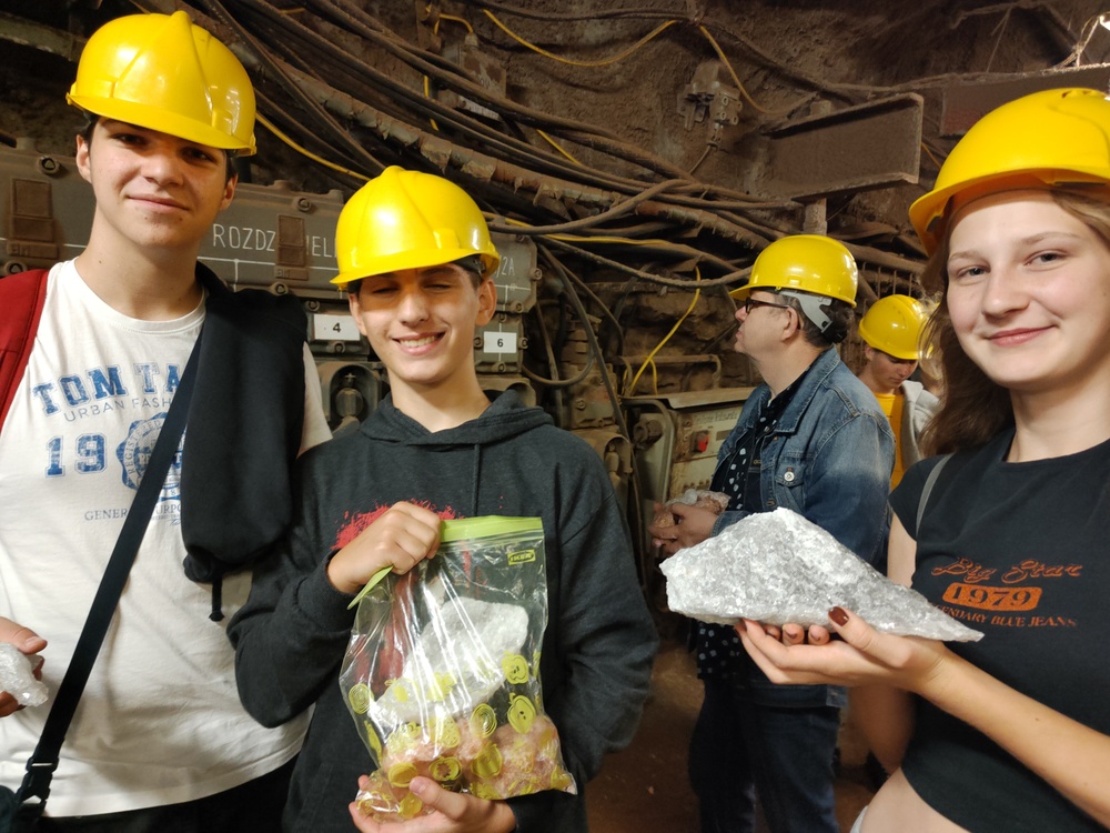 🧂Prawie jak górnicy wydobyliśmy z kopalni na powierzchnię sporo soli wrzuconej do plecaków. Dziś można niektóre okazy zobaczyć w sali geograficznej. Wyjątkową kłodawską sól wykorzystać też możemy w kuchni do potraw, każdy otrzymał w prezencie po jednym kilogramie cennej skały! Zachęcamy do oglądania okazów soli kamiennej z Kłodawy.