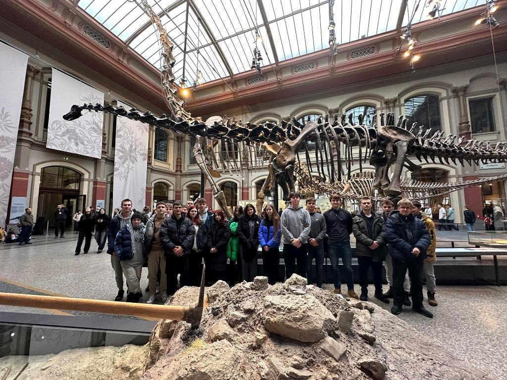 Pierwszym punktem wycieczki była wizyta w 🦖Muzeum Historii Naturalnej, gdzie klasa mogła podziwiać liczne pasjonujące eksponaty z dziedziny zoologii, paleontologii czy mineralogii.