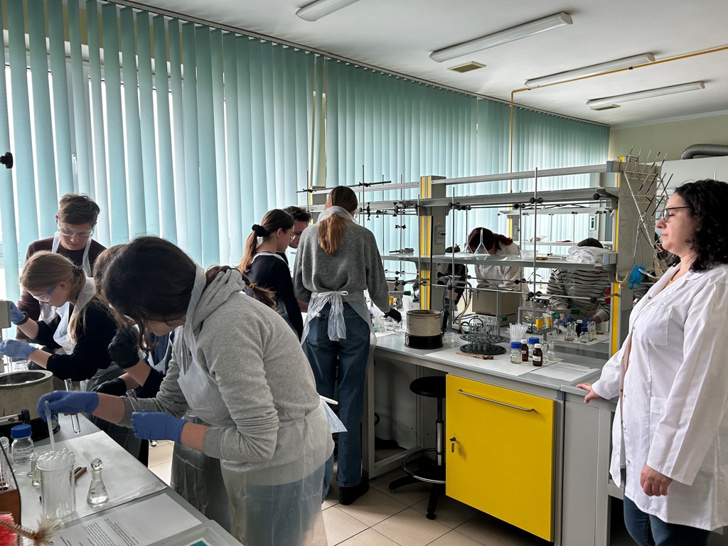 profesor Agaty Markowskiej-Szczupak. Po świetnym wykładzie podzieleni na grupy uczniowie przeszli na zajęcia. Grupa pierwsza strącała nanokrystaliczne sole i tlenki metali przejściowych, grupa druga poznawała właściwości substancji orogenicznych o znaczeniu biologicznym, a grupa trzecia tworzyła nawilżający krem-opatrunek otrzymywany z wykorzystaniem substancji pochodzenia naturalnego.