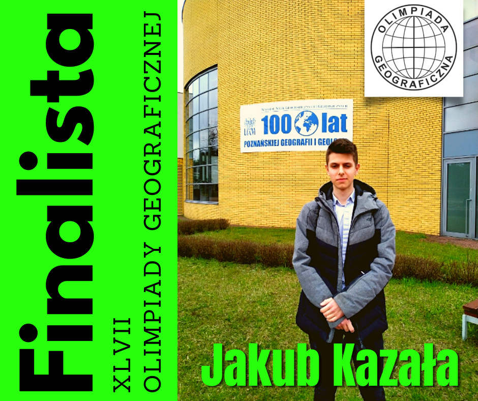 Z wielką przyjemnością informuję, że Jakub Kazała, uczeń klasy IIIA został finalistą XLVII Olimpiady Geograficznej w roku 2020/2021. Miesiące wytężonej pracy Jakuba zaowocowały sukcesem. W pierwszym etapie olimpiady brało udział 2116 osób, w drugim okręgowym 999, w trzecim krajowym 122 osoby, rywalizacja była więc duża. Warto wspomnieć, że tegoroczna olimpiada była wyjątkowa po względem zakresu wiedzy i umiejętności reprezentowanej przez uczniów. Poziom był bardzo wysoki i stosunkowo wyrównany.