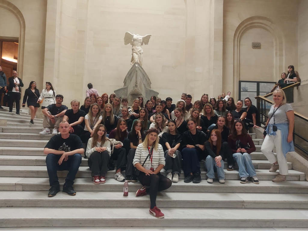 Trzeci dzień rozpoczęliśmy zwiedzaniem Paryża z Panią przewodnik Magdą Bogacką. Zobaczyliśmy Panteon, Ogrody Luksemburskie, Katedrę Notre-Dame oraz Kaplicę Saint-Chapelle. Wieczorem udaliśmy się do Luwru, gdzie Pani przewodnik przeniosła nas w niezwykły świat obrazów i innych eksponatów. Mogliśmy podziwiać dzieła Da Vinciego, Daliego i wielu innych znanych artystów, a widziana z bliska Mona Lisa zerkała na nas z uśmiechem.