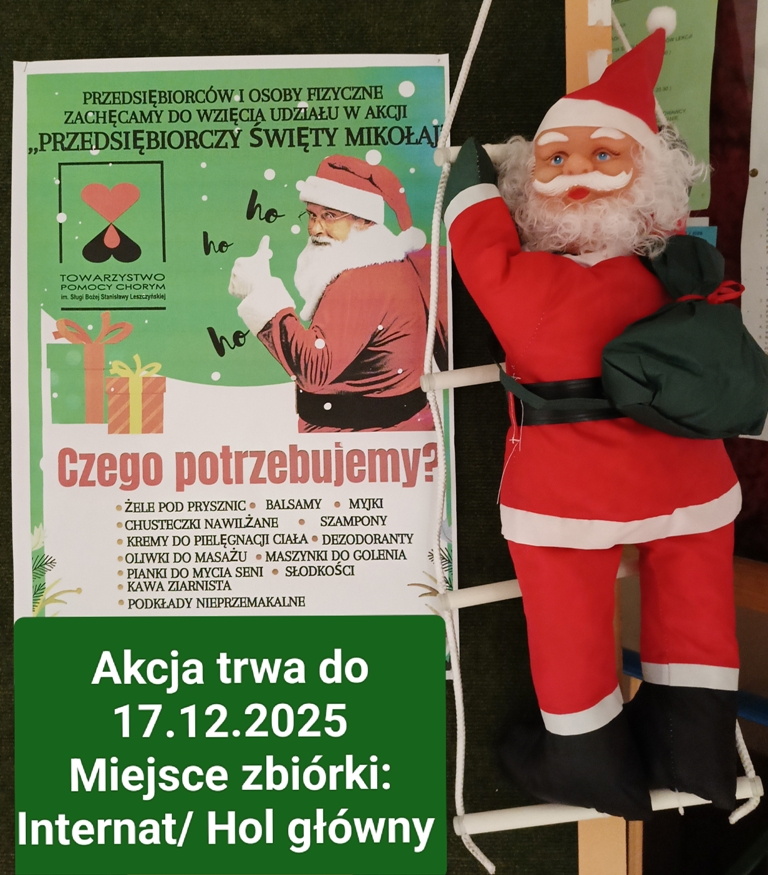 Zachęcamy do włączenia się w Akcję "Przedsiębiorczy Święty Mikołaj" na rzecz Pilskiego Hospicjum. Szczegółowe informacje na plakacie.