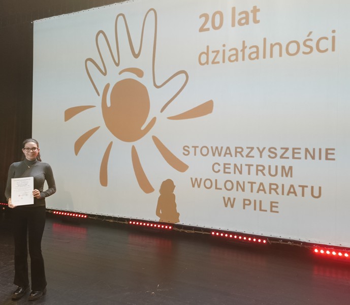M i l e n a  K u b i ś – uczennica klasy 3E II LO w Pile została laureatką Konkursu Barwy Wolontariatu nad Gwdą i Notecią organizowanego przez Stowarzyszenie Centrum Wolontariatu w Pile.