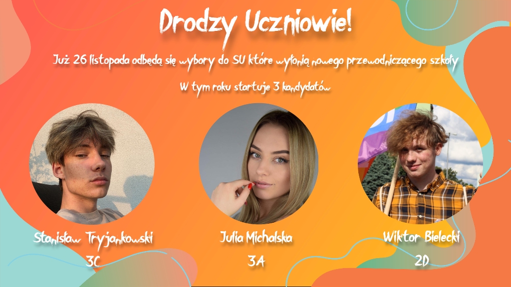 Sylwetki i programy naszych trzech kandydatów znajdziecie na tablicy ogłoszeń na pierwszym piętrze.