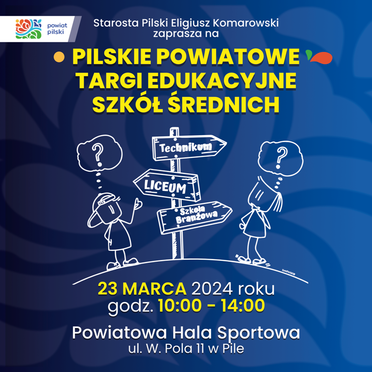 W imieniu organizatorów Starostwa Powiatowego w Pile zapraszamy uczniów szkół podstawowych na Pilskie Powiatowe Targi Edukacyjne Szkół Średnich, które odbędą się w Powiatowej Hali Sportowej przy Pola w Pile.
