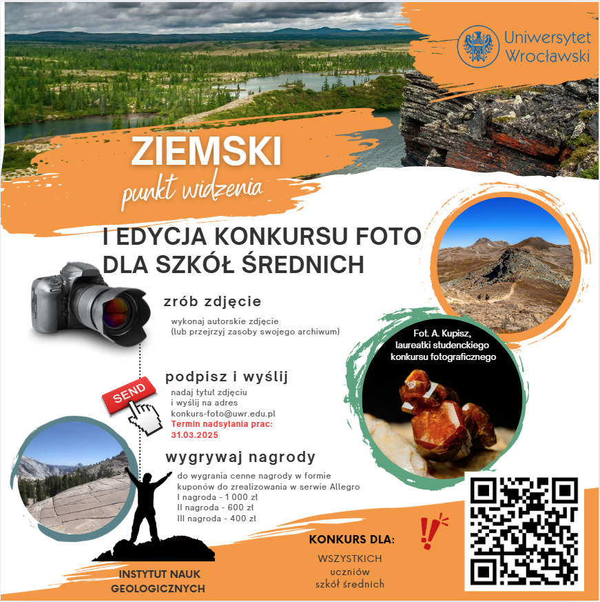 Zapraszamy wszystkich uczniów do wzięcia udziału w konkursie fotograficznym pt. 🌎Ziemski punkt widzenia🌍 organizowanym przez Instytut Nauk Geologicznych Uniwersytetu Wrocławskiego.