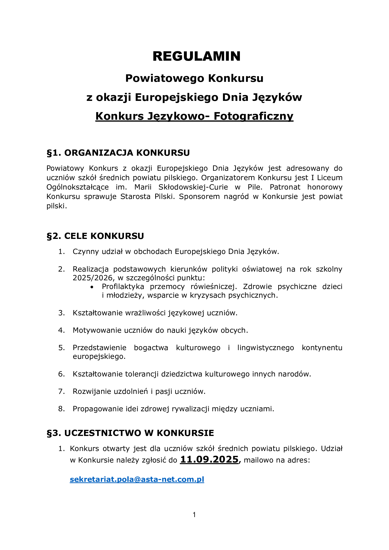 Serdecznie zapraszamy do wzięcia udziału w Powiatowym Konkursie z okazji Europejskiego Dnia Języków.
