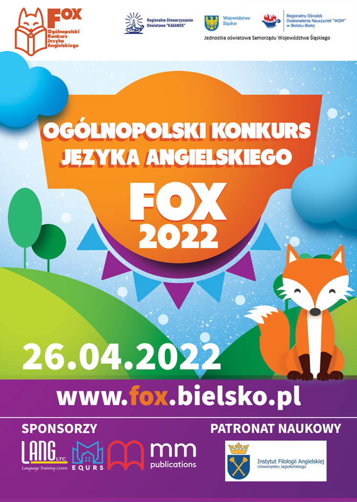 Zapraszamy do zapisów na Ogólnopolski Konkurs Języka Angielskiego FOX, koszt uczestnictwa 10zł.