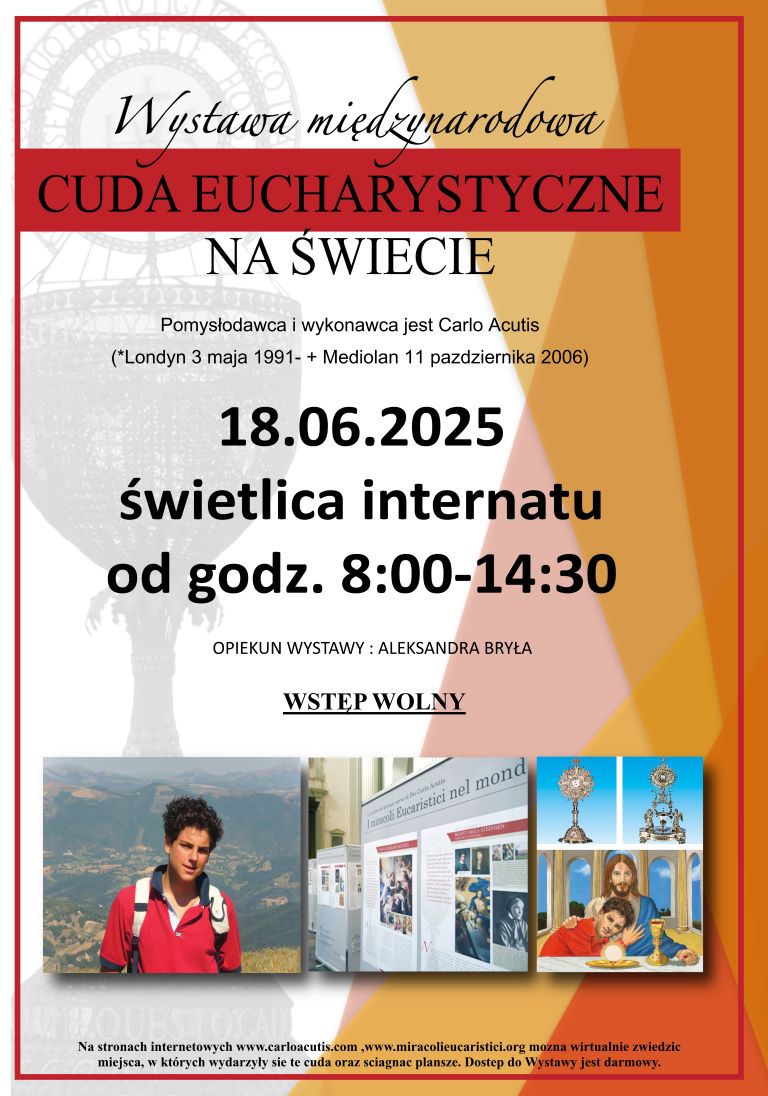 | 24.04.2026 | Zakończenie zajęć dydaktyczno-wychowawczych w klasach maturalnych. Uroczystość wręczenia świadectw ukończenia szkoły |